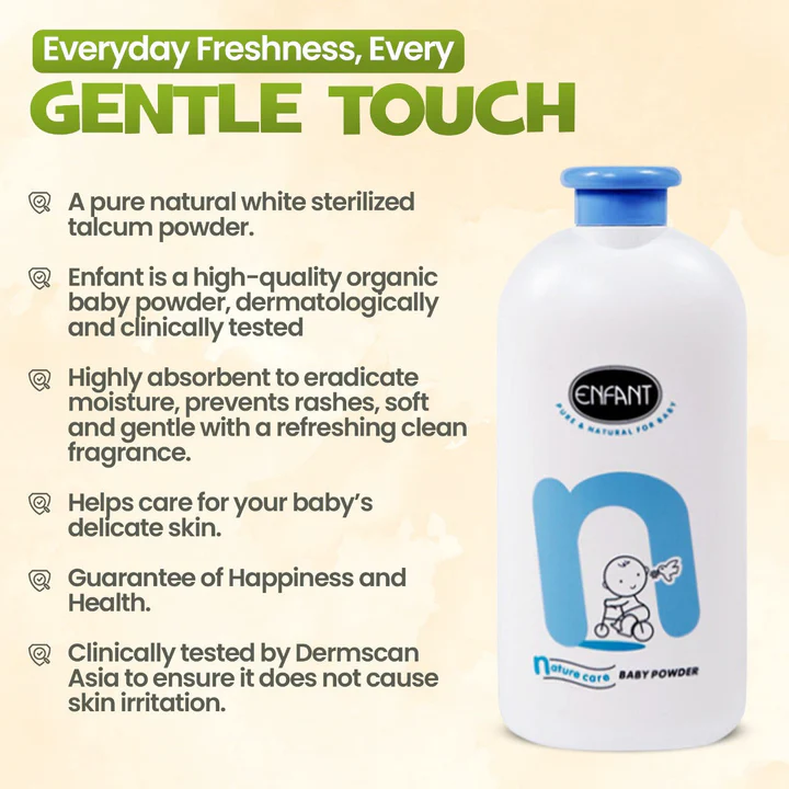 If you’re searching for a safe and gentle organic baby powder in UAE & Oman, ENFANT BABY POWDER NATURAL CARE is a perfect choice.