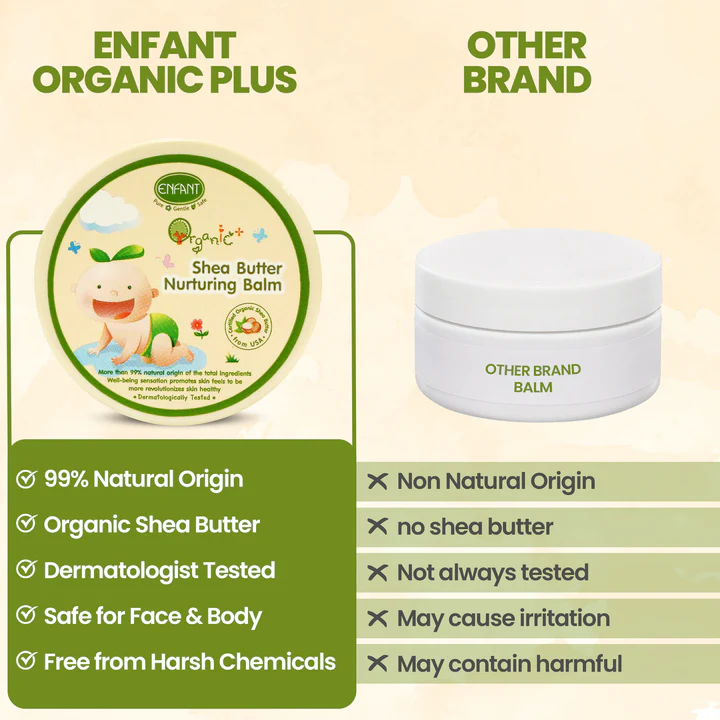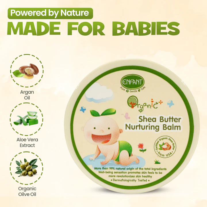 When it comes to your baby’s delicate skin, choosing the right baby balm is essential. ENFANT Organic Plus Shea Butter Nurturing Balm is specially formulated to provide deep nourishment and gentle protection for sensitive skin. Ideal for newborns, infants, and toddlers, this natural balm is enriched with organic Shea Butter, Argan Oil, and Olive Oil — all known for their moisturizing and skin barrier-repairing properties.
