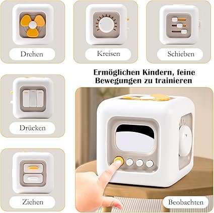 • 【Movement Rubik’s Cube Improve Baby’s Fine Motor Skills】 The six sides of this movement toy correspond to six different functions, which can be rotated, pushed, looked at, pulled, drawn in a circle, pushed, and other fine movements. It’s great for training your child’s hand skills and dexterity.