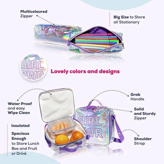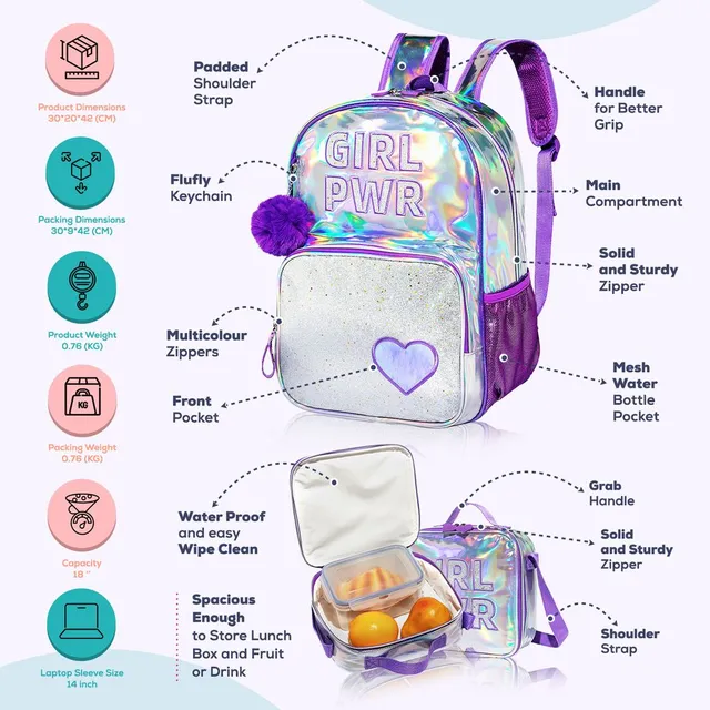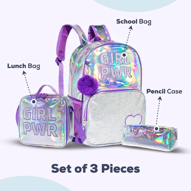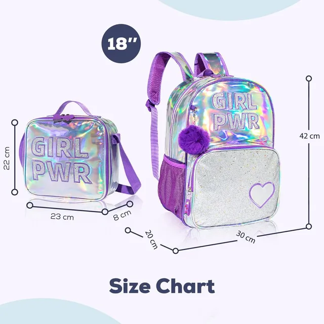 The Eazy Kids 18-inch Backpack Set in Purple is perfect for school and everyday adventures. This set includes a large, durable backpack with multiple compartments for books and supplies, a matching insulated lunch bag to keep meals fresh, and a handy pencil case to organize stationery. With adjustable padded straps and a vibrant purple finish, it offers comfort, style, and ample storage for young students.