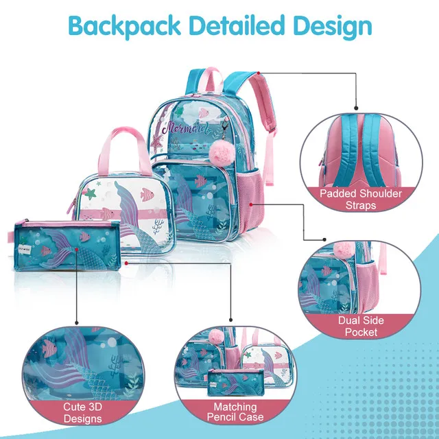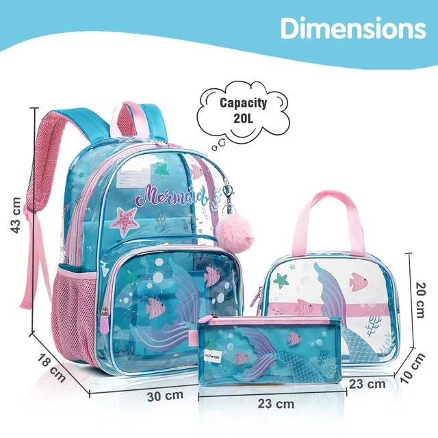 The Eazy Kids Mermaid 17-inch School Bag Combo Set includes a backpack, lunch bag, and pencil case crafted for durability and style. Constructed from water-resistant material, it keeps books and essentials safe and dry, while being easy to clean. Multiple compartments and front pockets offer optimal organization, with solid zippers and easy-grip pullers for smooth use. This set combines practicality with charming mermaid-themed designs, making it an ideal and delightful back-to-school gift for kids.