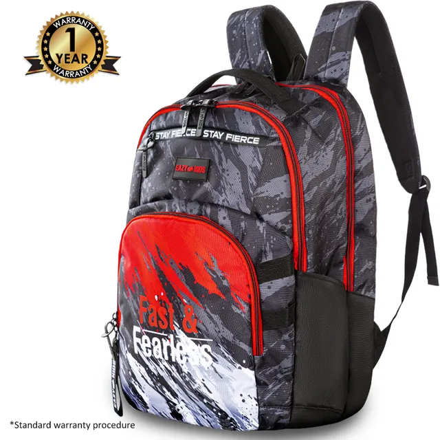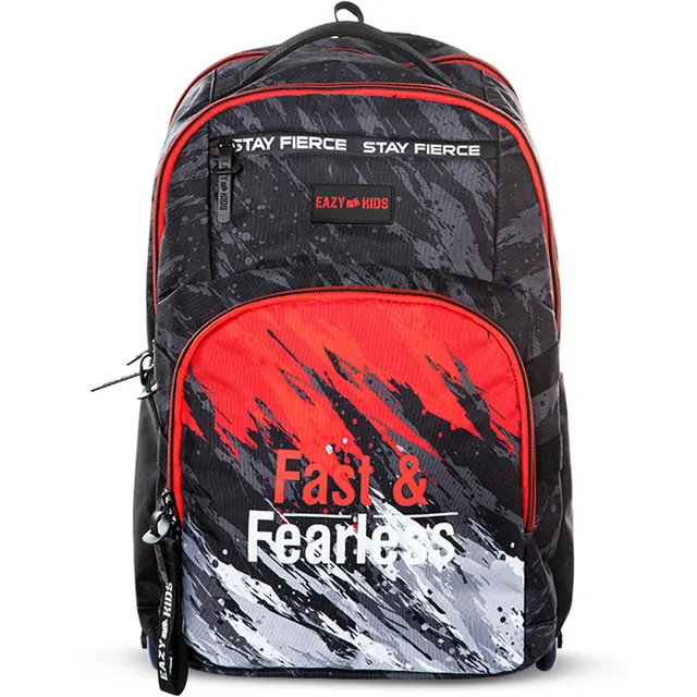 Stay ahead in style and functionality with the Eazy Kids 20-Inch School Bag – Fast & Fearless! Designed for teens for college, Office and School this 32L backpack offers ample space to carry books, gadgets, and school essentials with ease. The padded laptop compartment securely fits laptops up to 16 inches, ensuring protection on the go. With 3 spacious compartments and 4 pockets, organization is effortless, while the front pocket includes a small mesh coin pocket and a key string with a buckle clip keyring for added convenience. Designed for comfort, it features padded shoulder straps and a cushioned back panel, making it easy to carry even with heavier loads. Plus, it is trolley-compatible, allowing attachment to a trolley for additional ease. Whether heading to school or traveling, the Eazy Kids Fast & Fearless Backpack is the perfect companion—offering style, durability, and smart organization for students on the move!