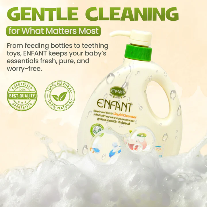 What makes ENFANT’s liquid cleaner stand out is its dermatologically safe formula and eco-friendly profile. It rinses off easily without leaving any residues, ensuring complete safety for everyday use.