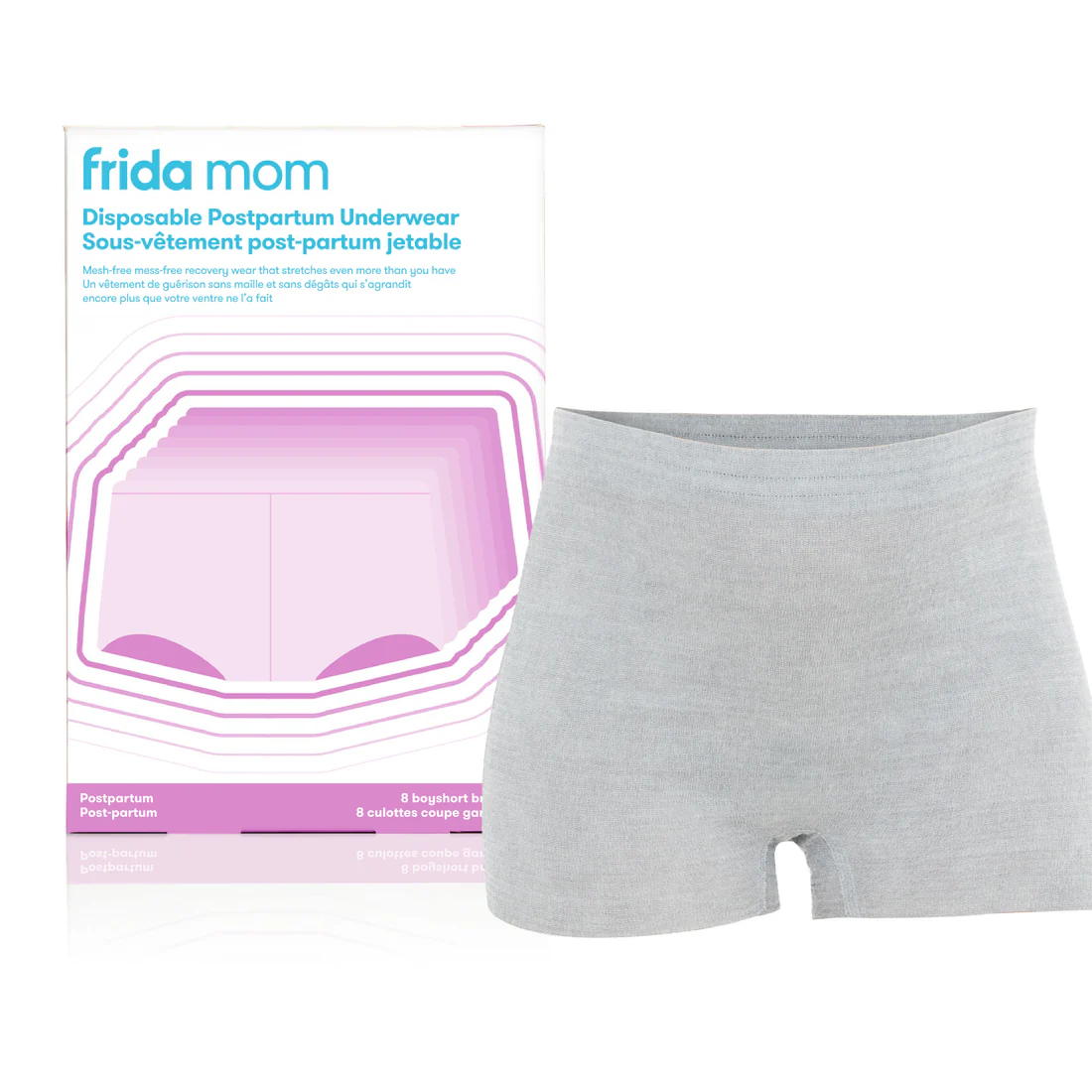 WEAR: Disposable Postpartum Underwear is Step 2 in the Frida Mom 5-step Postpartum Recovery Regimen; pack in hospital bag for use after the first postpartum bathroom trips at the hospital and back at home.