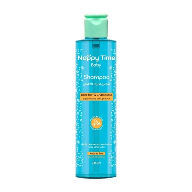 It is specially formulated to provide a soothing and safe bath time experience. Its tear-free formula ensures gentle cleansing without discomfort, making bath time calm and enjoyable for your baby. Enriched with nourishing ingredients like date and chamomile extracts, it helps moisturize, soothe, and gently cleanse delicate skin and hair. Perfect for head-to-toe use, this all-in-one shampoo leaves your baby’s skin and hair feeling soft, clean, and refreshed.Dermatologist-tested and hypoallergenic, it’s carefully crafted to be safe for sensitive skin, helping to reduce the risk of irritation or allergic reactions. The shampoo is also infused with a light chamomile fragrance, leaving your little one smelling fresh after every bath. Backed by a trusted name in baby care, Nappy Time delivers the quality and care parents can count on—for moments that matter most.